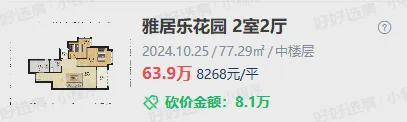 而在去年,小区同户型成交价格直降腰斩,成交单价来到了8268元/㎡,成交总价仅63.9万元。
