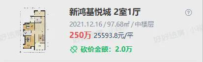 21年,小区成交了一套97㎡的套二,成交单价2.55万/㎡,成交总价250万。