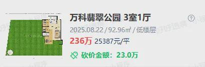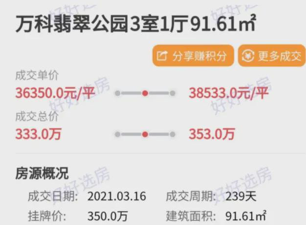 21年,作为生态带的巅峰,万科翡翠公园成交了一套91㎡套三带大面积花园,成交单价直接干到了惊人的3.7万/㎡,成交总价333万!