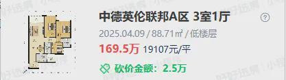 今年4月,A区成交了一套88㎡的套三,成交单价1.9万/㎡,成交总价169万。
